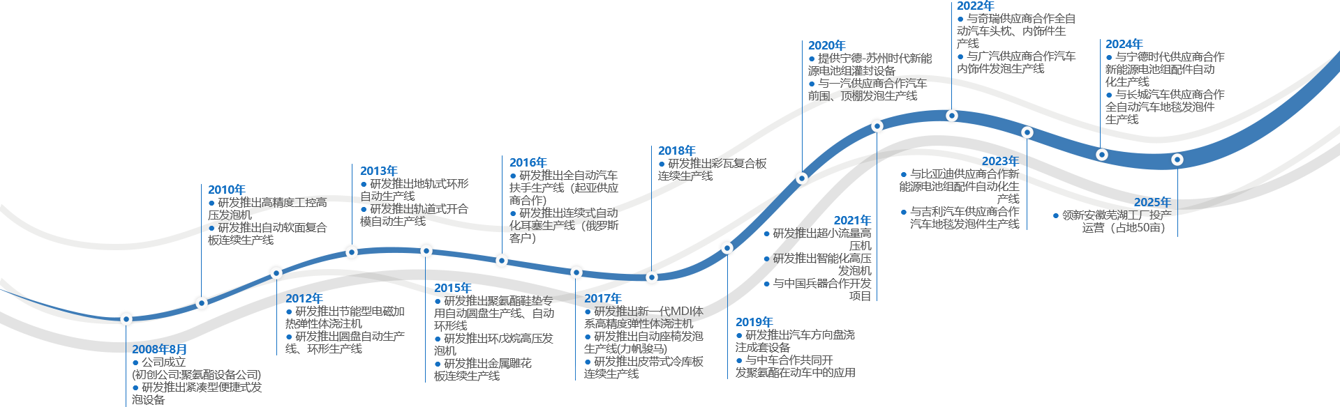 公司主要研發(fā)生產(chǎn)聚氨酯高壓發(fā)泡機、低壓發(fā)泡機、密封條澆注機、彈性體澆注機等以及配套的生產(chǎn)線。設(shè)備應(yīng)用領(lǐng)域:汽車交通,家居家具,建筑,體育醫(yī)療,工礦領(lǐng)域等行業(yè)。